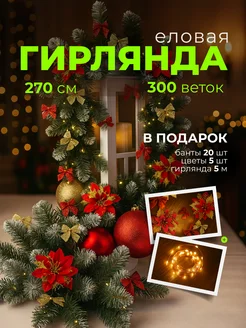 Еловая гирлянда хвойная заснеженная 2.7 м