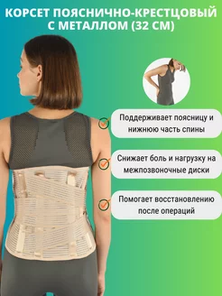 Пояснично - крестцовый корсет, с металлом, 32 см K - 807