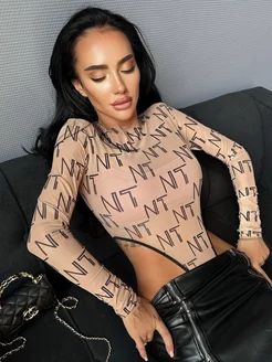 Боди сетка с рукавами тату блузка