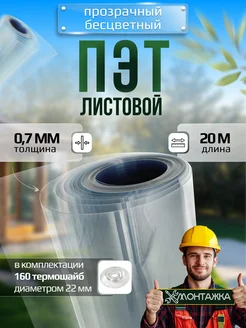 ПЭТ лист прозрачный в рулоне 0,7 мм - 20 метров