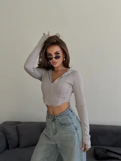 кроп топ укороченный на молнии с капюшоном