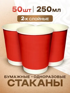 Стаканы бумажные двухслойные 250 мл, 50шт.красный