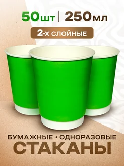 Стаканы бумажные двухслойные 250 мл, 50шт. зеленый