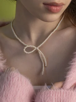 Колье жемчужное с подвеской бантик
