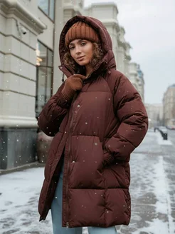 Куртка зимняя пуховик на поясе длинный теплый с капюшоном