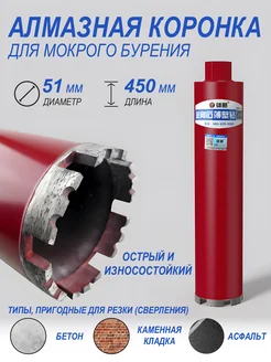Алмазная коронка для мокрого бурения по бетону 51х450 мм
