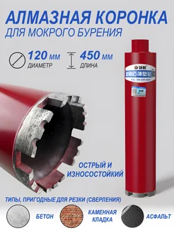 Коронка по бетону для мокрого бурения, 120х450 мм