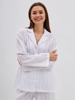 Пижама со штанами и рубашкой хлопковая с длинным рукавом
