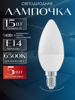 Светодиодная лампочка свеча 15 ватт Е14 6500к 5 штук