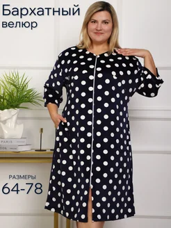Домашний велюровый халат на молнии большие размеры