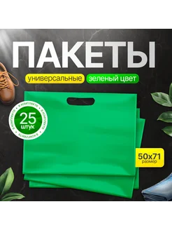 Пакет 50*71 см, зеленый, 70 мкм, 25 штук с вырубными ручками