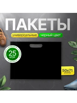 Пакет 50*71 см, черный, 70 мкм, 25 штук с вырубными ручками