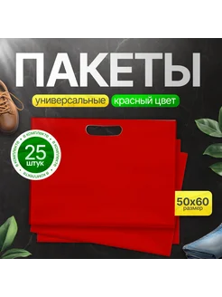 Пакет 50*60 см, красный, 70 мкм, 25 штук с вырубными ручками