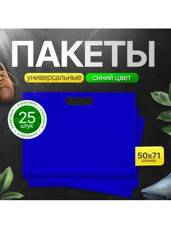 Пакет 50*71 см, синий, 70 мкм, 25 штук с вырубными ручками п