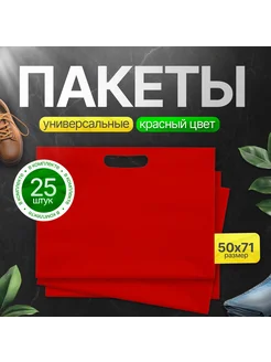 Пакет 50*71 см, красный, 70 мкм, 25 штук с вырубными ручками