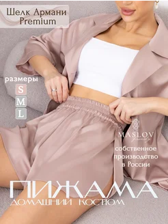 Пижама с шортами и рубашкой шелковая