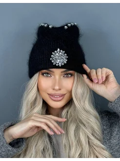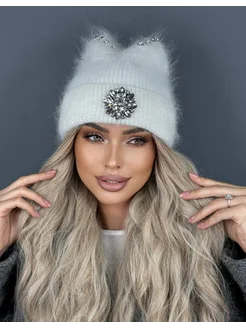 Шапка бини ангорка в стразах