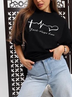 Футболка оверсайз длинная с принтом надпись светящаяся