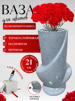 Ваза на кладбище для цветов из полимергранита серая 21 см