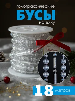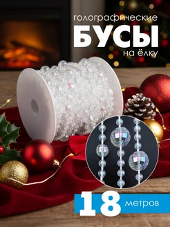 Перламутровые бусы на елку прозрачные 18 метров