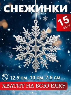 Украшения на елку снежинки набор 15 шт