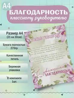 Благодарность классному руководителю