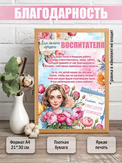 Благодарность воспитателю и нянечке детского сада 3 шт А4