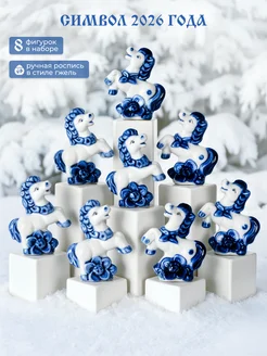 Новогодняя коллекция фарфоровых лошадок в стиле Гжель