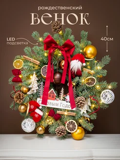 Венок новогодний с подсветкой 40 см