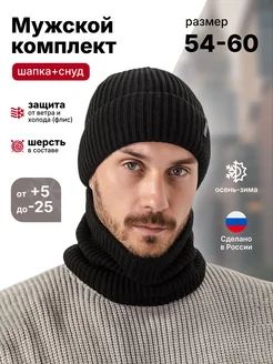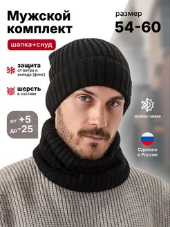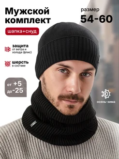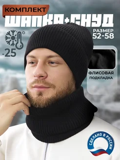 шапка со снудом зимняя вязаная бини на флисе