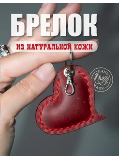 Брелок Сердце из натуральной кожи черный с красной нитью