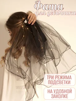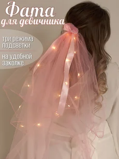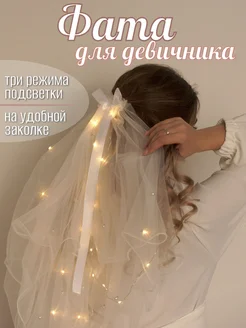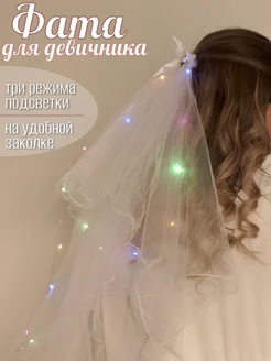 Фата для девичника на заколке белая светящаяся с подсветкой