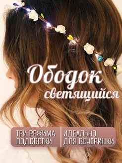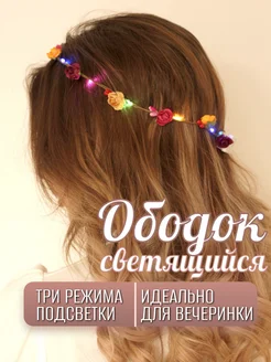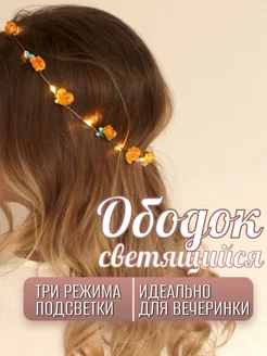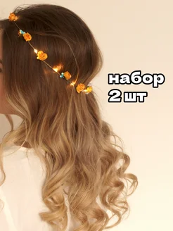 Ободок для волос женский светящийся с цветами набор 2 шт