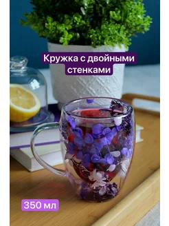Кружка с двойным дном и стеклом с сухоцветами внутри 350 мл