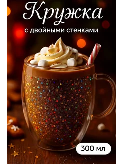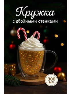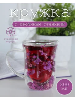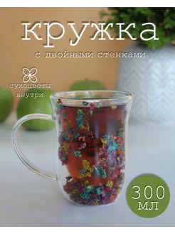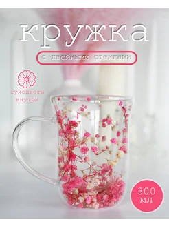 Кружка с двойным дном и стеклом с сухоцветами внутри 300 мл