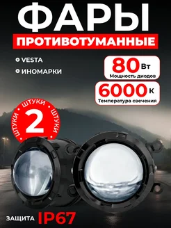 ПТФ LED линзы. Kalina. Granta. Largus. UAZ Patriot