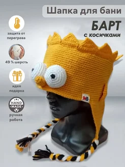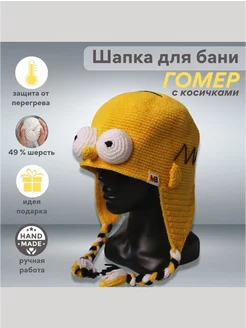 Шапка вязаная для бани и сауны "Гомер" с косичками