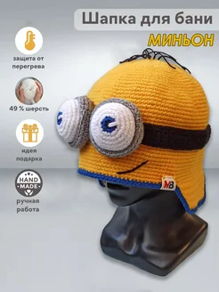 Шапка вязаная для бани и сауны "Миньон, 2 глаза"