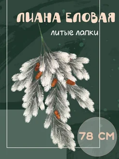 еловая ветка заснеженная с шишками свисающая лиана 78 см