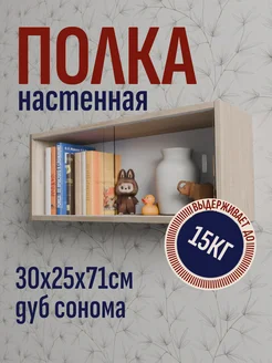 Полка навесная застекленная, 30х71х25 см, сонома