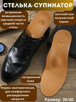 Стельки ортопедические кожаные для обуви от плоскостопия