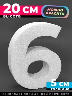Объемная цифра шесть (6) из пенопласта 20 см
