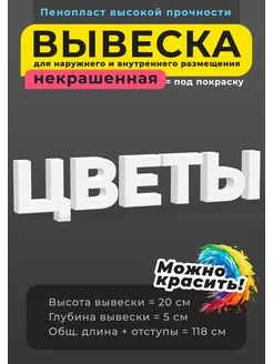Вывеска Цветы (высота 20 см ) неокрашенная