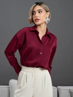 Шелковая рубашка атласная блузка оверсайз нарядная офис