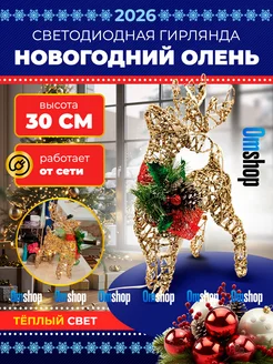 Новогодний светящийся олень 30 см