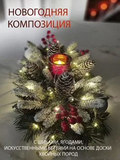 Новогодняя композиция на стол со свечами