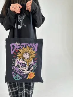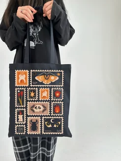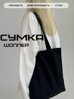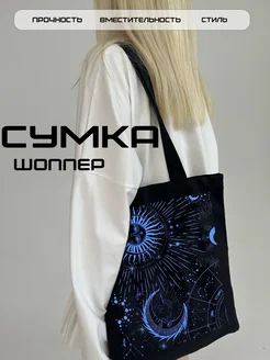 Сумка Шоппер Черная с принтом тканевая хлопок