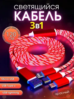 Светящийся кабель для зарядки телефона USB 3в1