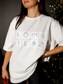 Стильная плотная футболка оверсайз с новогодним принтом 2026