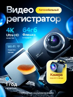 Видеорегистратор для автомобиля 4К с Wi-Fi, 2 камеры